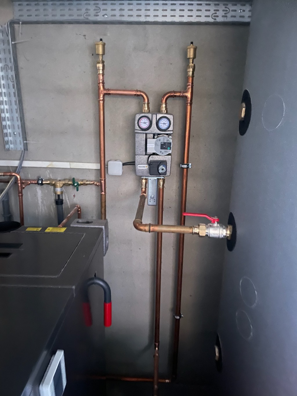 Les clients réalisent une rénovation globale avec une isolation intérieure, changent les fenêtres, isolent les combles et la dalle sur sous-sol et nous font modifier le réseau de chauffage centrale. Leur choix d'installer une chaudière Hargassner SMART-HV 20 est tout à fait pertinent car elle offrira un confort de fonctionnement et une autonomie tout à fait adaptés grâce. l'installation d'un ballon tampon de 1500 litres.