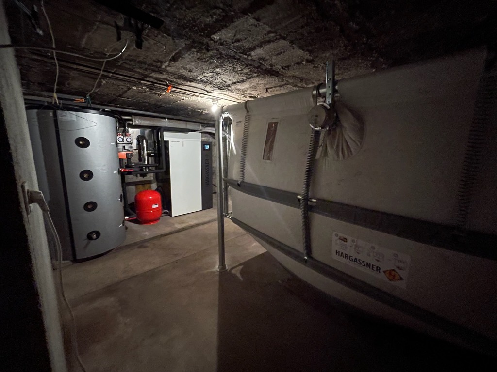 Dans le village de Pers-Jussy, en Haute-Savoie (74) entre la Roche-sur-Foron et Annemasse, installation d'une chaudière à granulés de bois Hargassner Nano PK25 à la place d'une chaudière fioul/copeaux de bois MORVAN et d'un silo textile de stockage en lieu et place de la citerne à mazout.